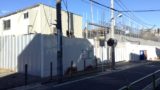 手前に1号棟と銀色のフェンスのところは更地になっている。