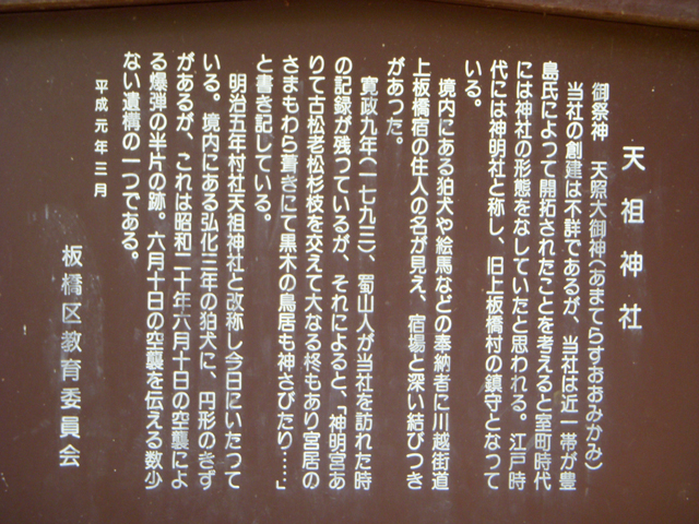 江戸時代には神明社と称し、旧上板橋村の鎮守となっている。