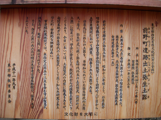 昭和58年度、前野町式土器の内優品二点が板橋区の有形文化財に指定され、