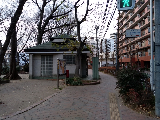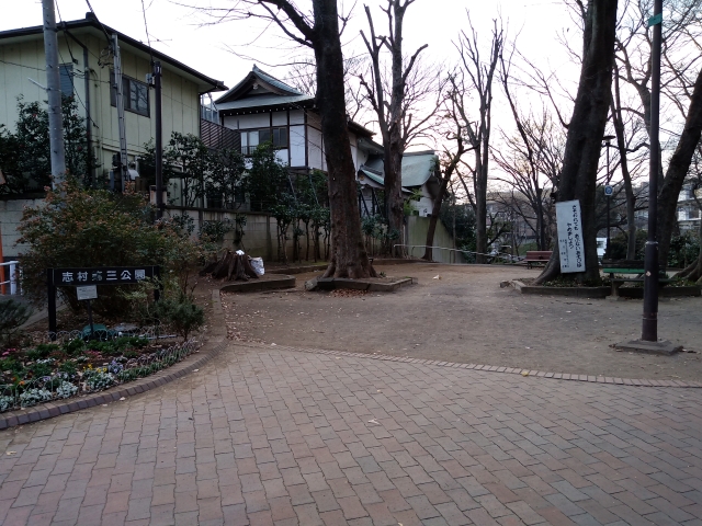 志村志村1丁目にある公園で、土地の造り上、3つのエリアにわかれている。