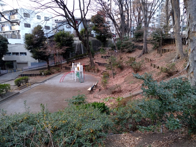 志村1丁目にある公園で、土地の造り上、3つのエリアにわかれている。