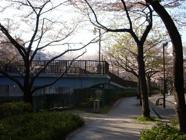 この付近の石神井川沿いには広場が多くもうけられており、花見をするには良いスペースである。