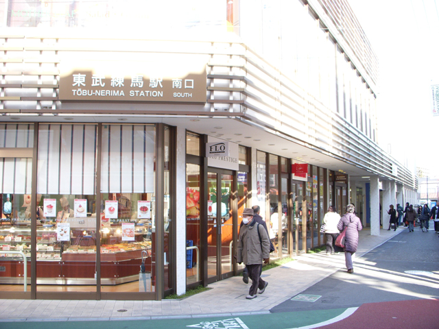 東武練馬駅南口。駅の外観は改装され、喫茶店やパン屋などが新たにテナントとして入った。