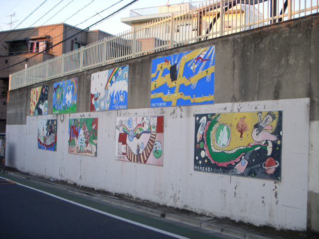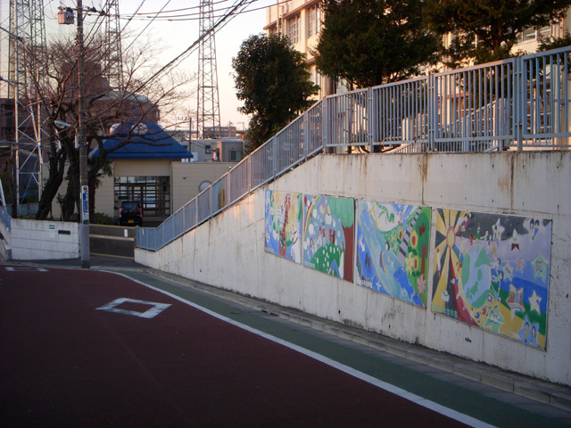板橋区立向原小学校 (2012.01) 大山 X Facebook はてブ Pocket LINE コピー 2020.09.292024.02.10 校庭の下に道路が通る珍しい学校。 外壁には卒業生の絵が描かれている。 撮影日 2012/01/09