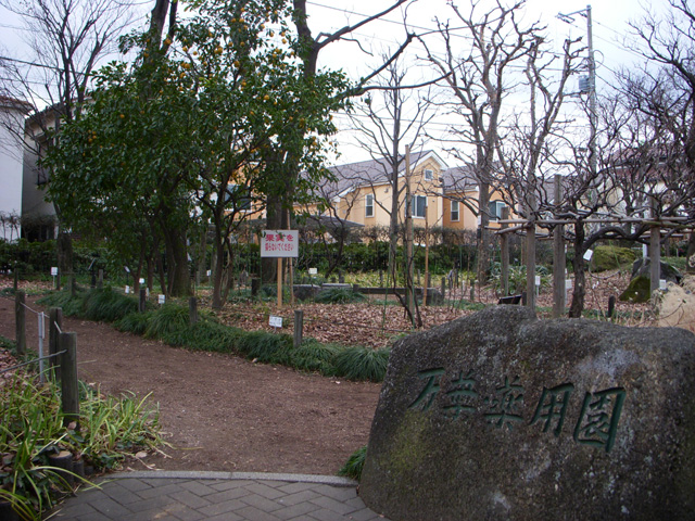 赤塚植物園内、道を挟んであるのが「万葉・薬用園」