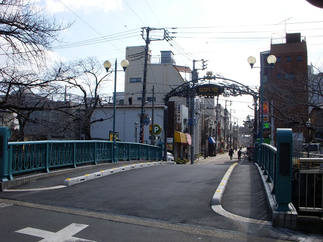 川沿いの環七側から商店街方面に向かって。