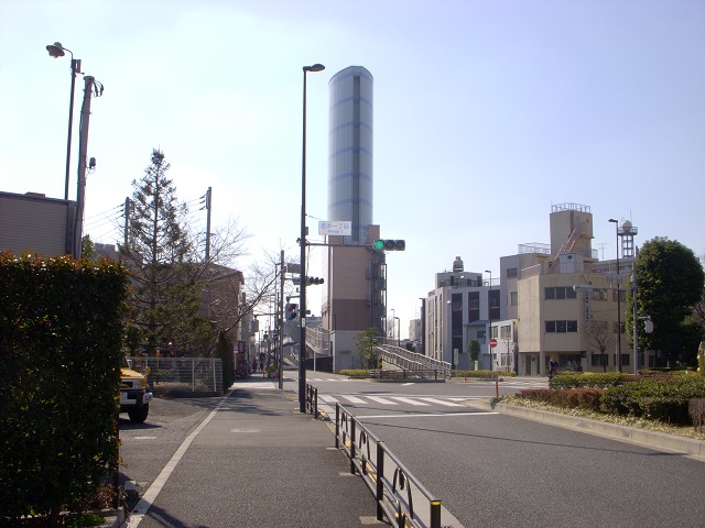 交差点を東上線方面に向かって撮影。先に見える高い建造物は下に通る環八の換気所。