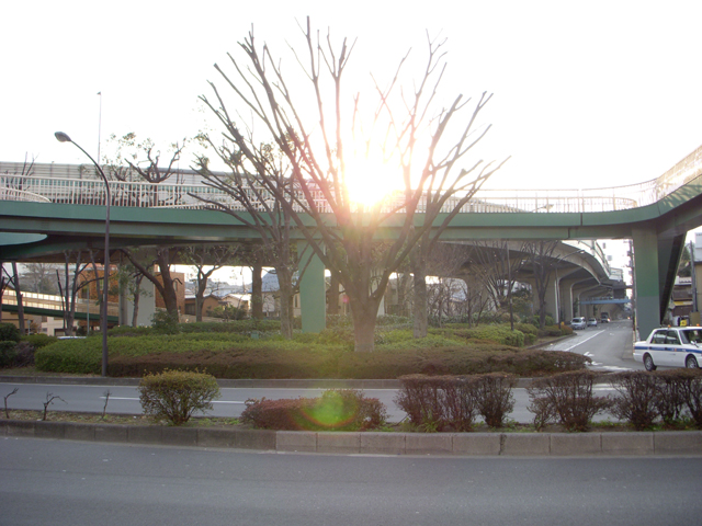 蓮根西台交差点の上をはりめぐる歩道橋。