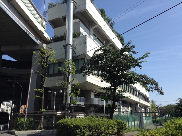 前野町首都高5号線とつながっている建物。すぐ横に首都高の料金所がある。
