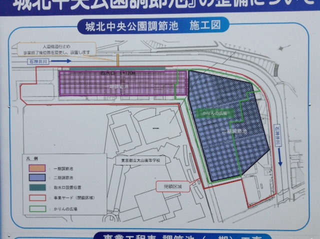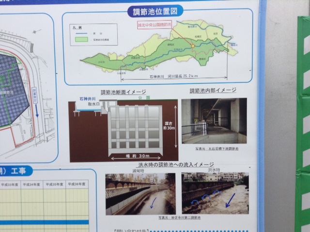 小茂根台風や集中豪雨時の洪水対策として一時的に水を貯める施設。