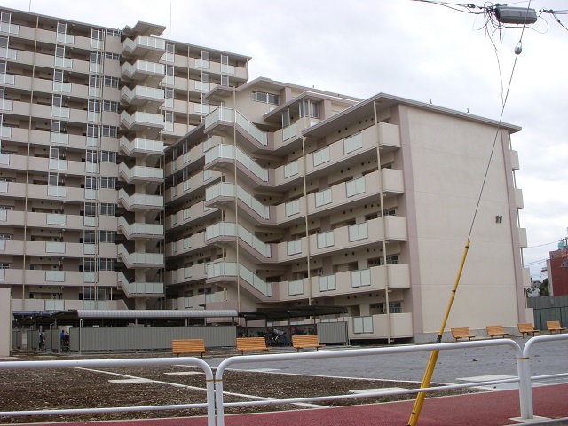 (新)板橋富士見町アパート 10号棟・11号棟 (2015.01) ときわ台 X Facebook はてブ Pocket LINE コピー 2020.10.012024.07.15 ここ数年に新しく建て替えられた都営住宅。 上から見るとL字型となっている。 写真左側が10号棟、右側が11号棟。 こちらは10号棟。 こちらは11号棟。 撮影日 2015/01/24