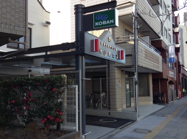 川越街道と中丸通り・都道420号・ハッピーロード大山へ延びる道の5又交差点にあったかつての交番。