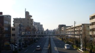高島通り、坂下2丁目・坂下3丁目に架かる歩道橋。 歩道橋の上から谷原方面に向かって。 歩道橋の上から浮間方面に向かって。 撮影日 2015/02/11