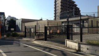 向原2丁目、街中にあるゴルフ打ちっ放し。 都内にある打ちっ放しにしては、広い方の部類に入るのでしょうか。 入り口とは反対側の壁面から。左側の絵の描かれた壁は向原小学校。 撮影日 2017/08/14